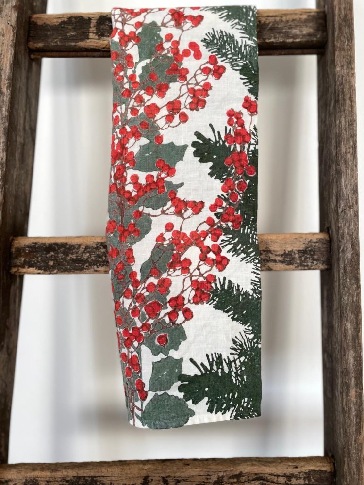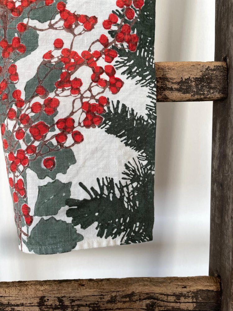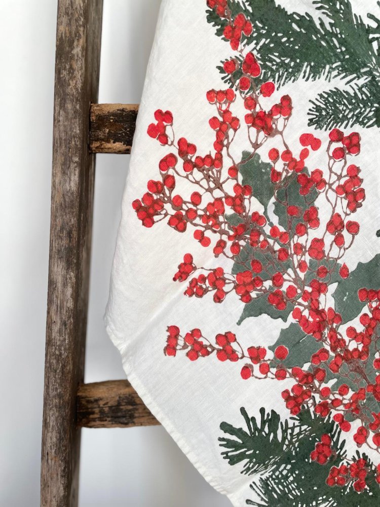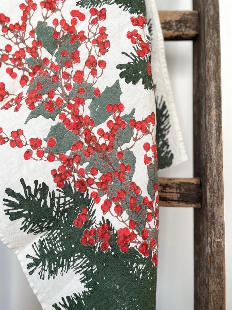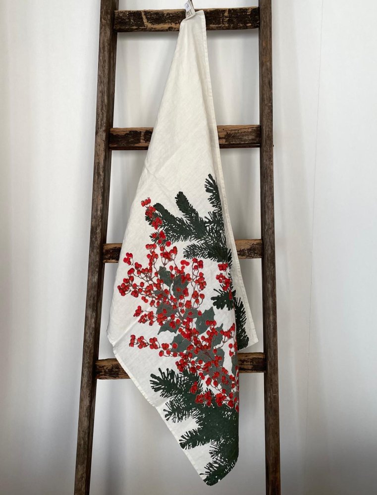 Strofinaccio in puro lino Holly stampato a mano