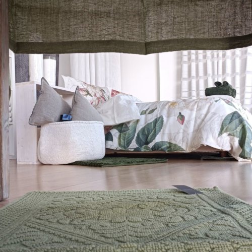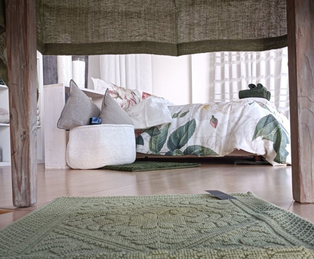 Caldi plaid in prezioso Pail 100% ITALIANO, realizzati in nuovissimi colori di “terra” & “cielo” e accompagnati da morbidi cuscini in tonalità;